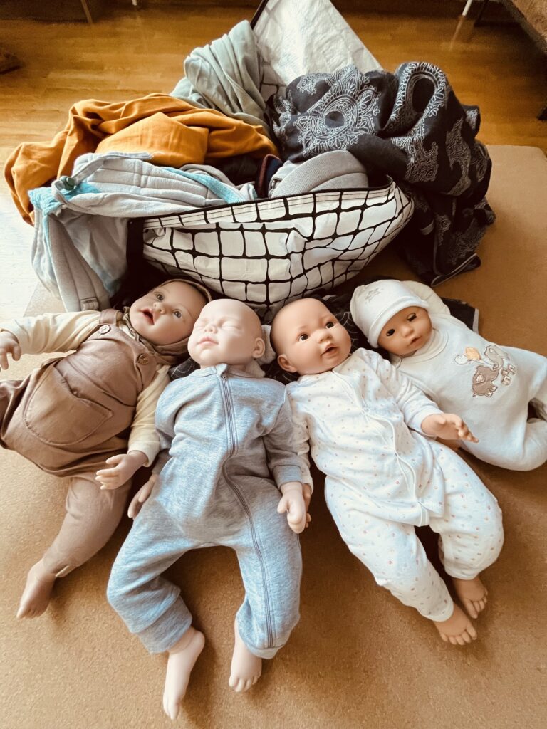 Wie wäre es mit einer gemeinsamen Trageeinheit, bei der ihr Bindetechniken ausprobiert, lacht und euch gegenseitig unterstützt?